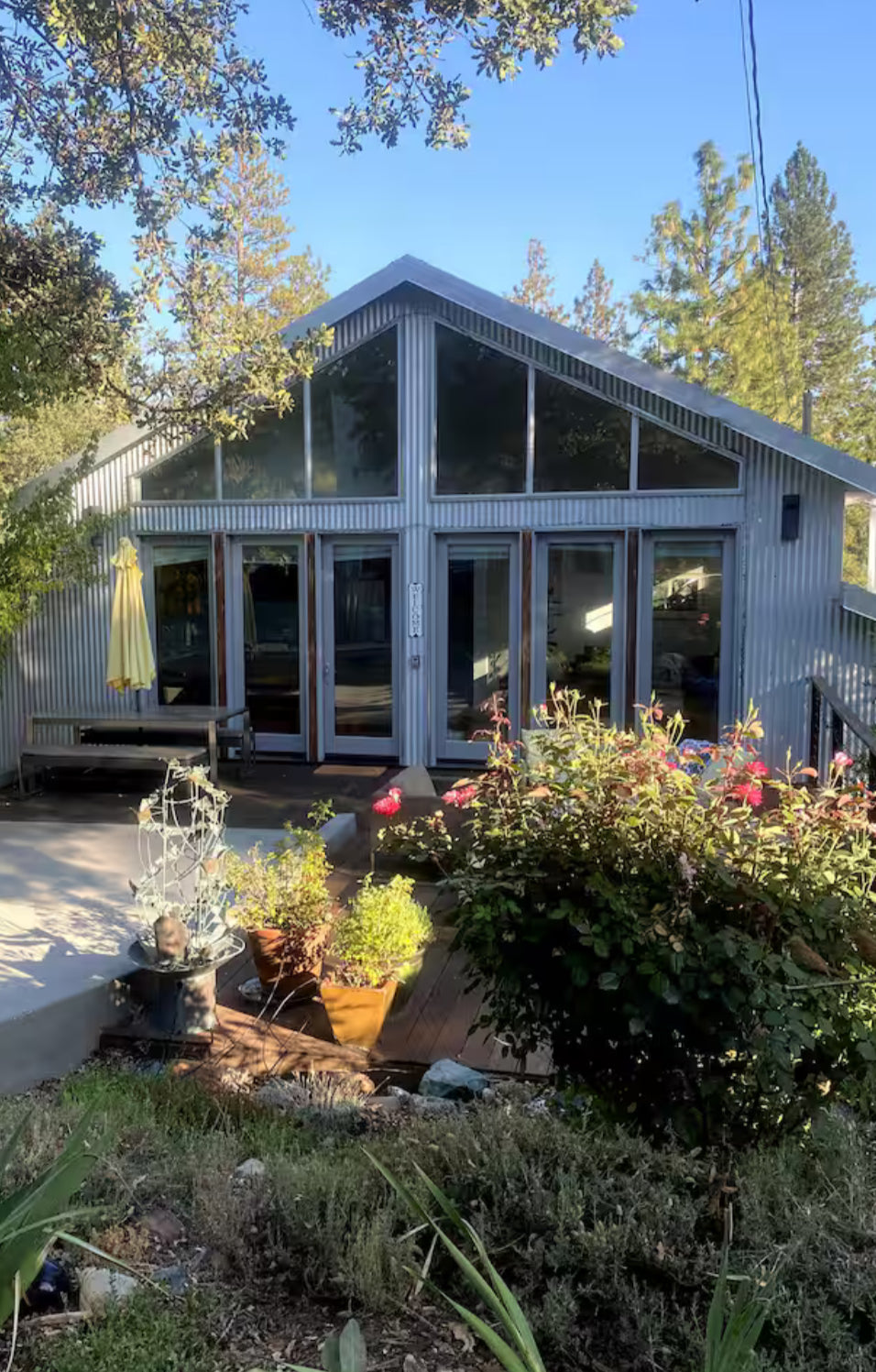 The Diggins, a contemporary dwelling less than 5 minutes from downtown Nevada City by car or a 15 minute walk has everything you need for the perfect getaway. Owned by long time Nevada City residents based in the arts and architecture, the place is filled with art, books, and modern accessories and includes a gas fireplace, full kitchen w/dishwasher, living room, two bedroom, two bath, laundry & a big outdoor patio. Perfect for two couples or a family of four or a visiting artist/professional.