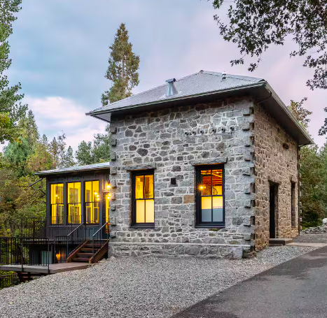 A Nevada City icon blends industrial roots and modern style in this one-of-a-kind three-story home with high ceilings, warm wood beams, natural light, and a wrap-around deck. Situated at the edge of downtown and right on the beloved Tribute Trail, the house offers the perfect mix of city vibe and peaceful nature.