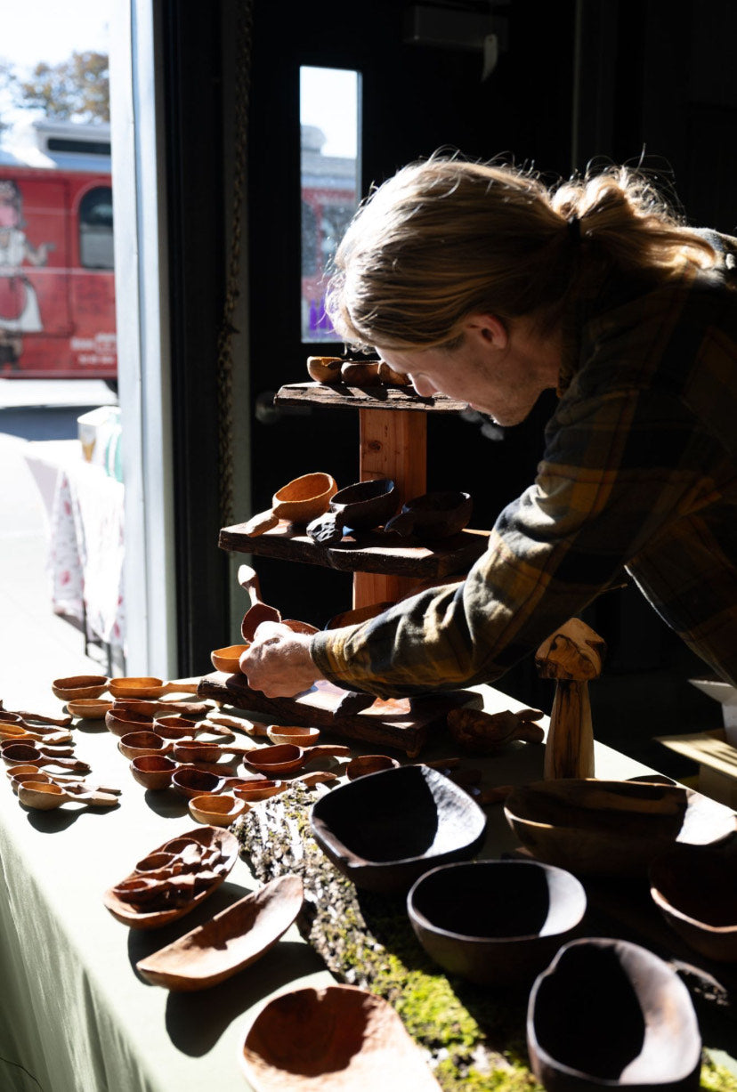 Wood has always been at the center of his life. Throughout his career, Tyler made time for carving projects, honing a deep respect for traditional techniques and the quiet precision of hand tools. Today he is a full-time woodworker specializing in the centuries-old craft of hand-carved goods, creating functional pieces with nothing more than an axe and a set of carving knives.